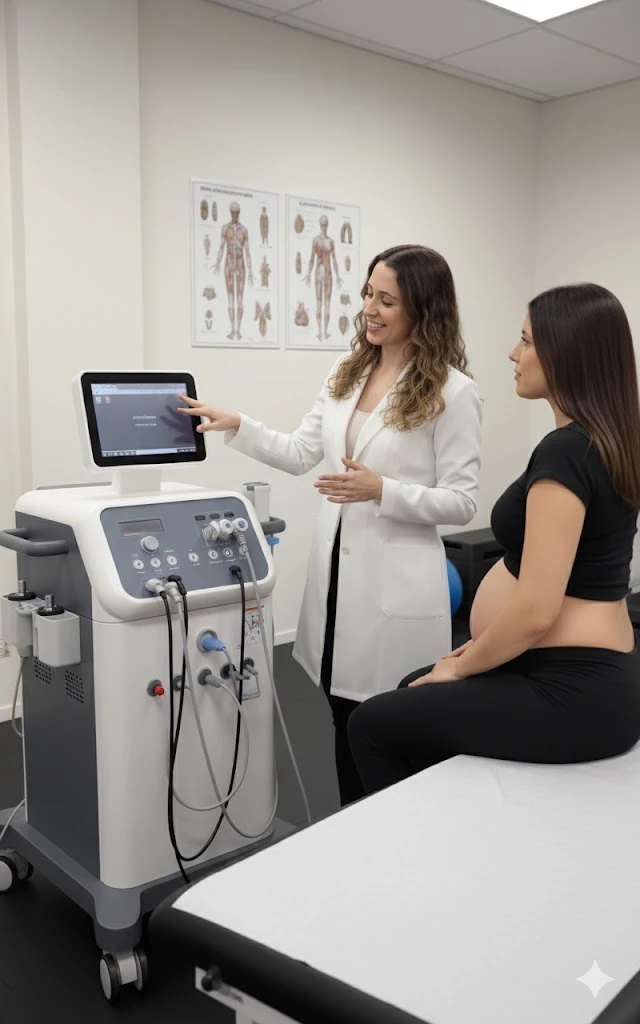 É um tratamento para a reabilitação abdominal e a recuperação da força e função do assoalho pélvico. Ajuda na recuperação da confiança e da liberdade pós-parto.